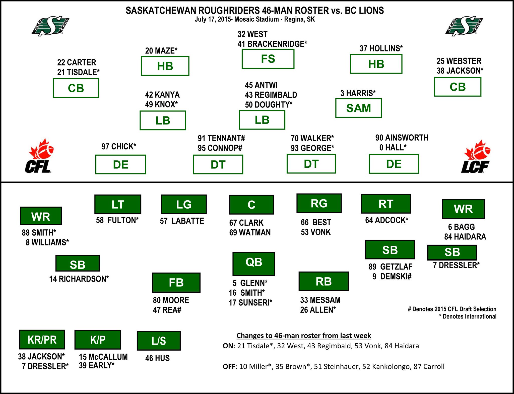 Depth Charts for Friday Night